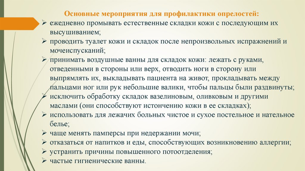 ПРОФИЛАКТИКА ОПРЕЛОСТЕЙ