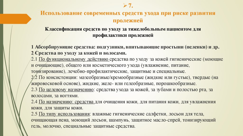 7.Использование современных средств ухода при риске развития
