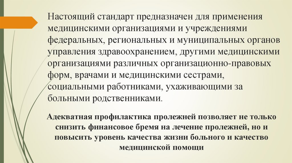 Настоящий стандарт предназначен для применениямедицинскими организациями и учреждениями