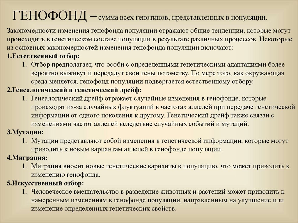 происходить в генетическом составе популяции в результате различных процессов. Некоторые