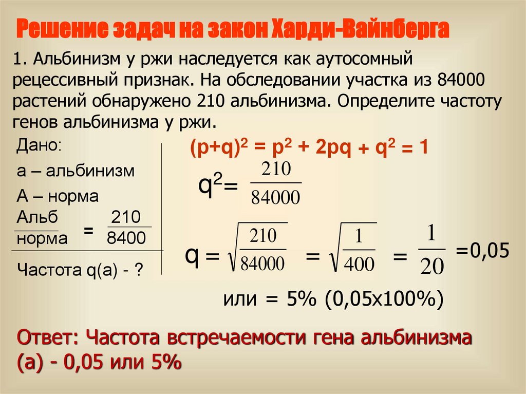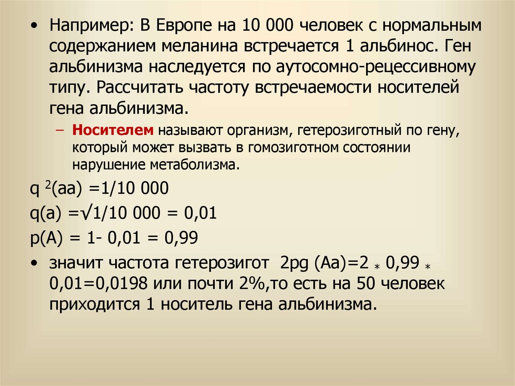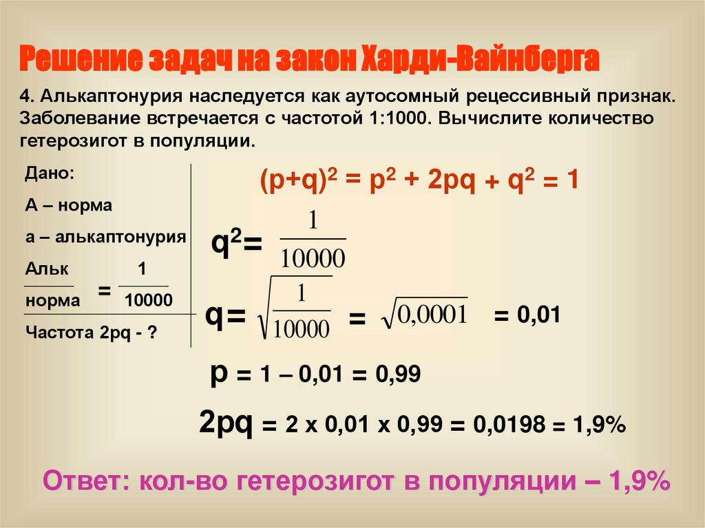 Решение задач на закон Харди-Вайнберга4. Алькаптонурия наследуется как аутосомный рецессивный признак.