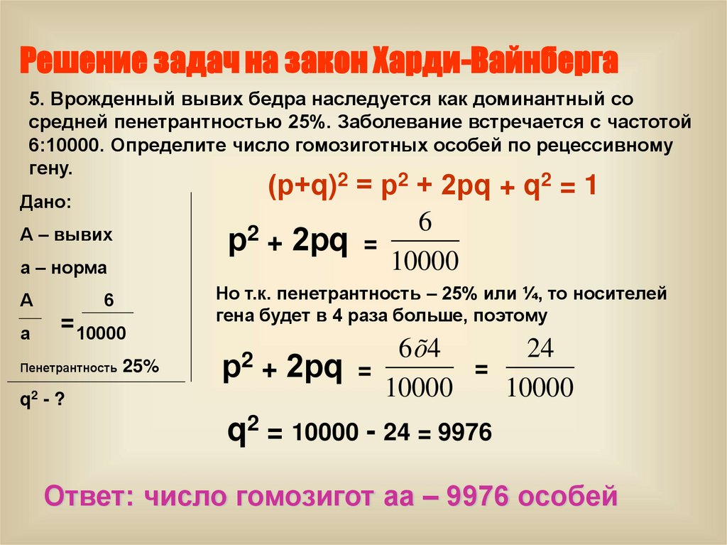 Решение задач на закон Харди-Вайнберга5. Врожденный вывих бедра наследуется как доминантный со
