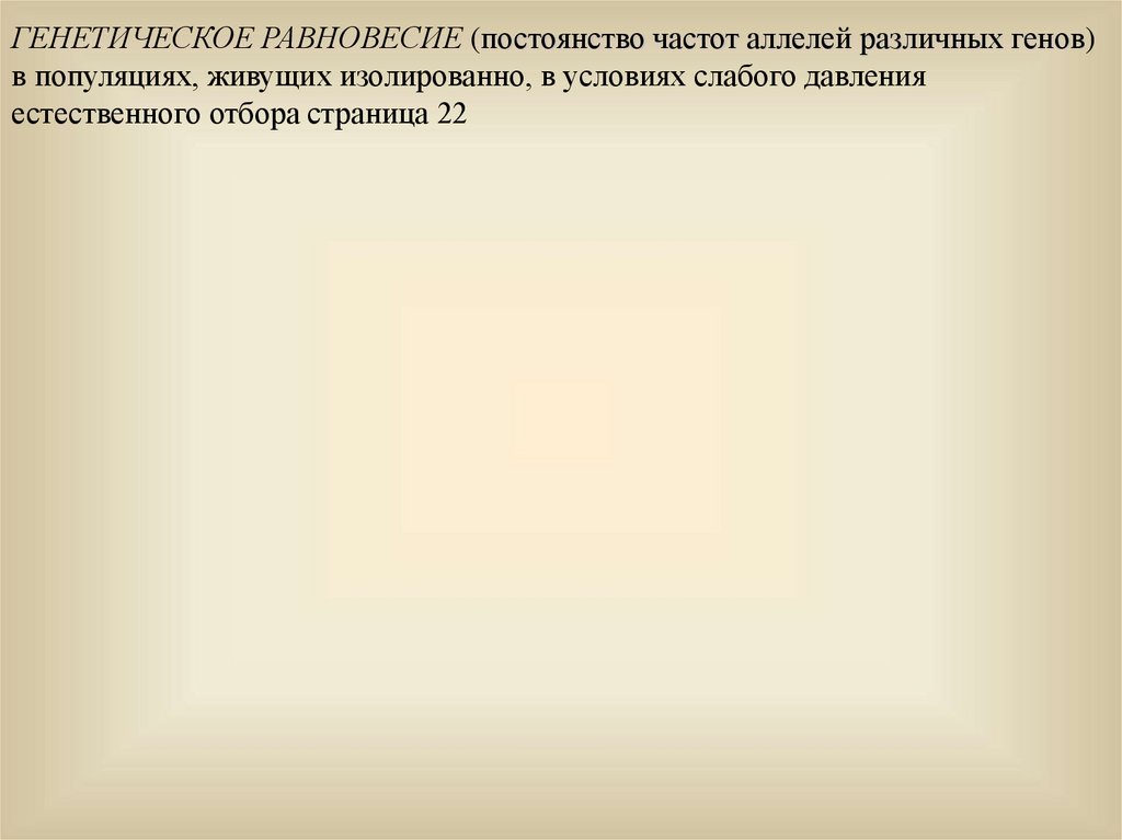 ГЕНЕТИЧЕСКОЕ РАВНОВЕСИЕ (постоянство частот аллелей различных генов)в популяциях, живущих изолированно, в условиях слабого давления