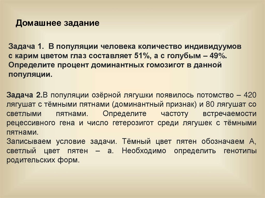 Домашнее заданиеЗадача 1. В популяции человека количество индивидуумов