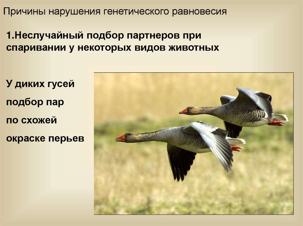 Причины нарушения генетического равновесия1.Неслучайный подбор партнеров при