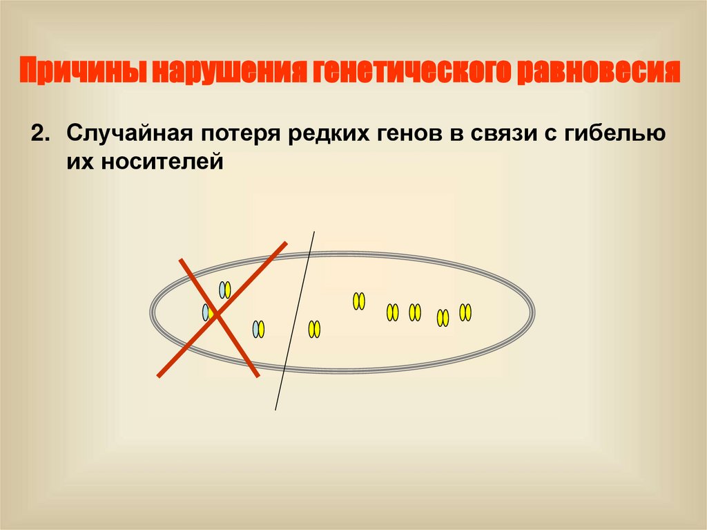 Причины нарушения генетического равновесия2. Случайная потеря редких генов в связи с гибелью