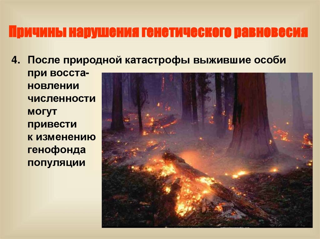 Причины нарушения генетического равновесия4. После природной катастрофы выжившие особи