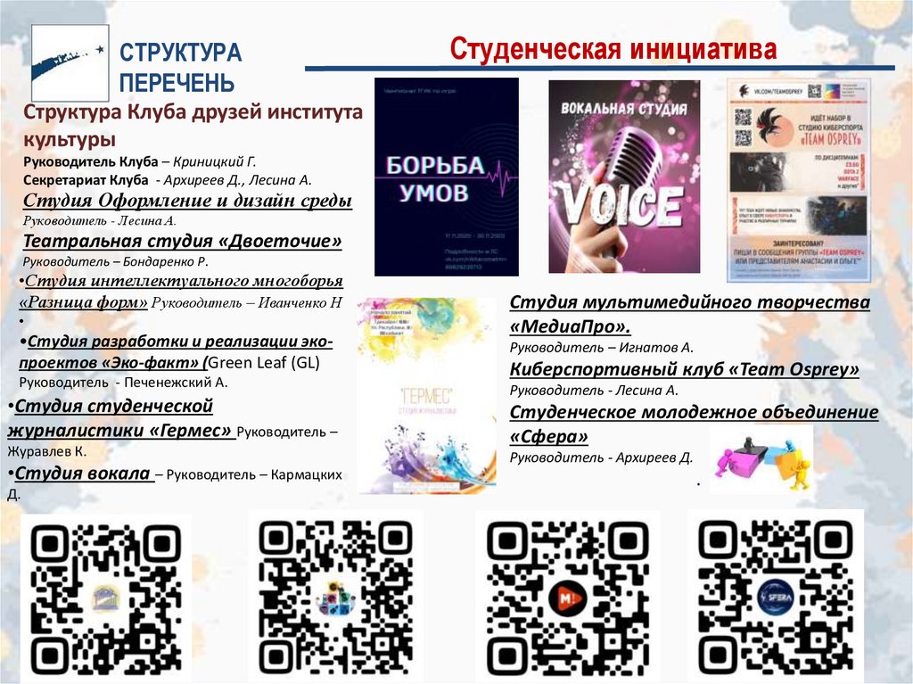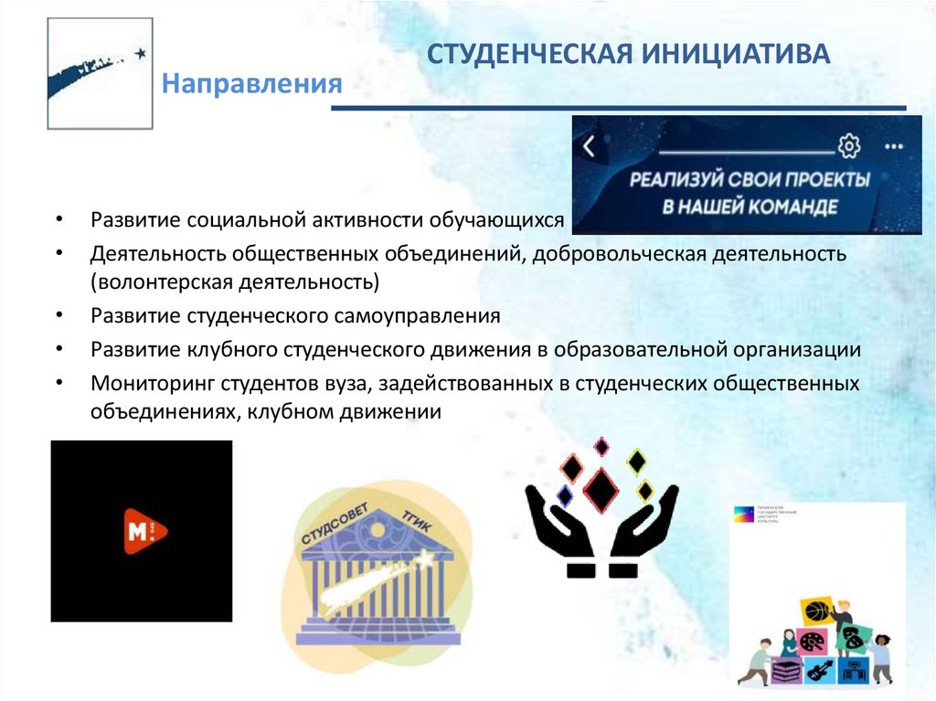 деятельность студентов; участие в интеллектуальных конкурсах и др.