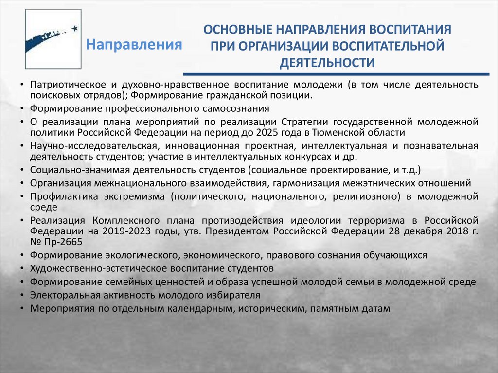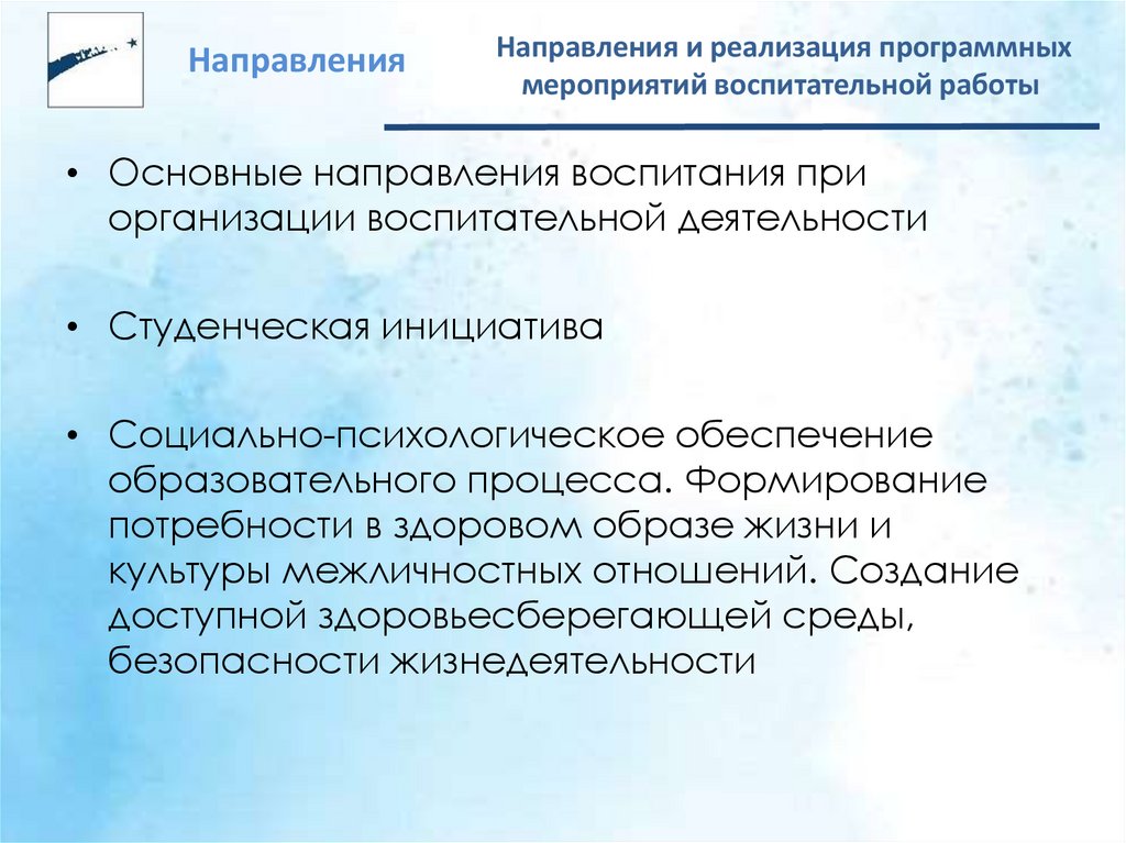 НаправленияОСНОВНЫЕ НАПРАВЛЕНИЯ ВОСПИТАНИЯ