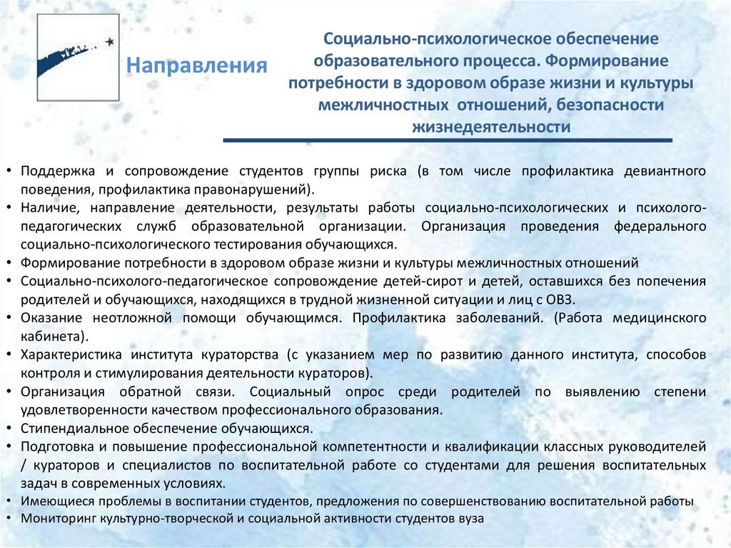 • Поддержка и сопровождение студентов группы риска (в том числе профилактика девиантного