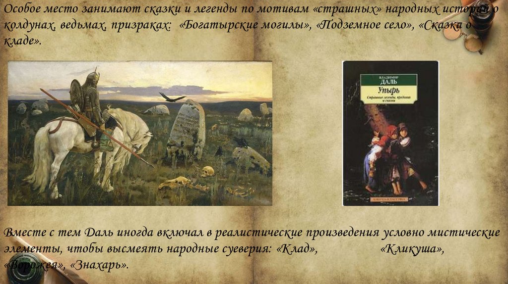 Вместе с тем Даль иногда включал в реалистические произведения условно мистические