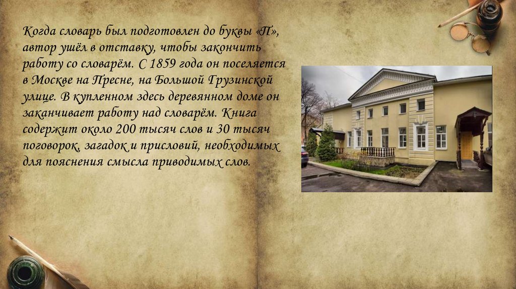 Большая Грузинская, 4/6, строение 9, где создатель знаменитого словаря