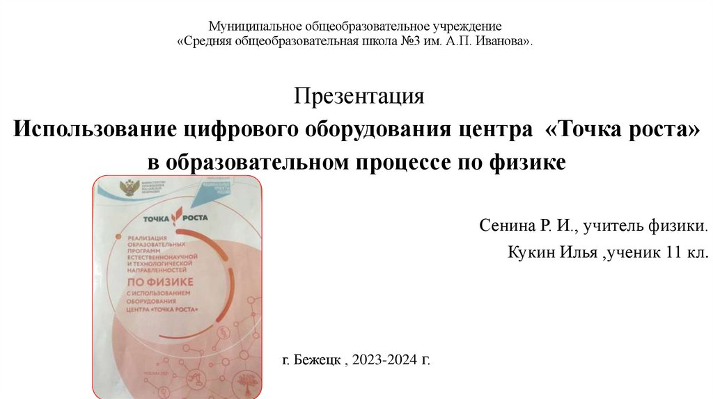 ПрезентацияИспользование цифрового оборудования центра «Точка роста»