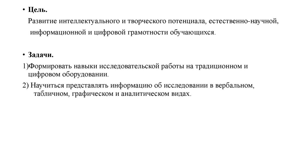 • Цель.Развитие интеллектуального и творческого потенциала, естественно-научной,