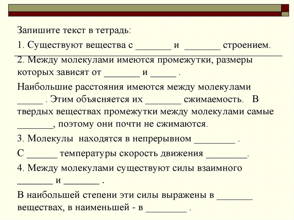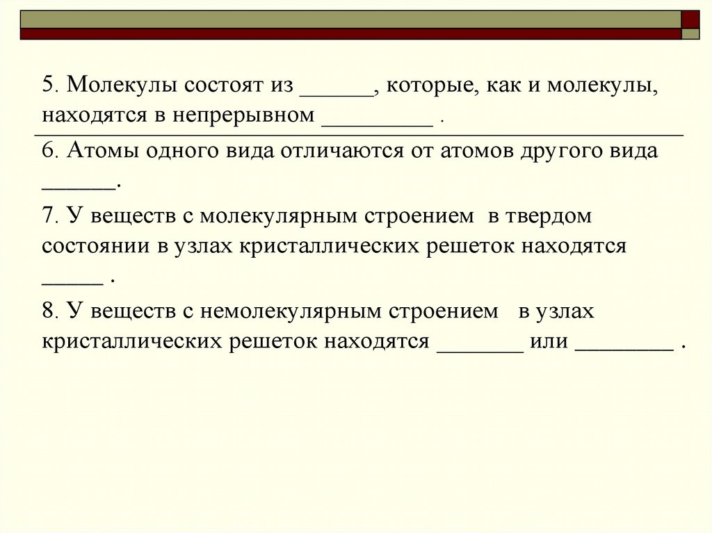 5. Молекулы состоят из ______, которые, как и молекулы,находятся в непрерывном _________ .