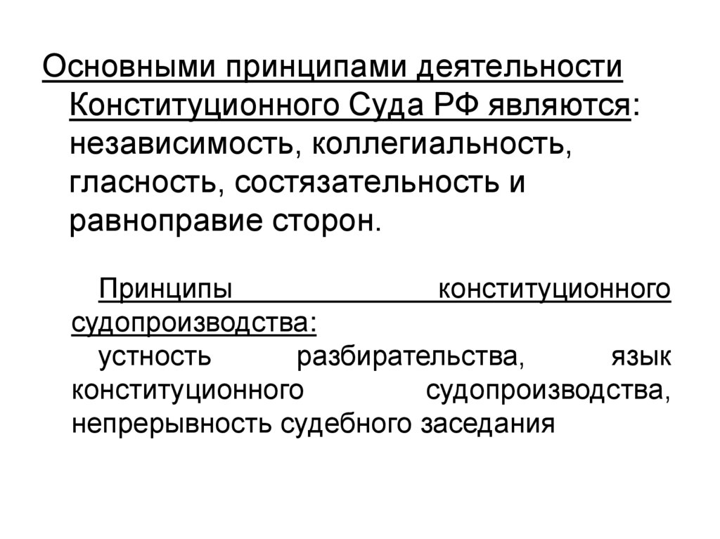 Основными принципами деятельностиКонституционного Суда РФ являются: