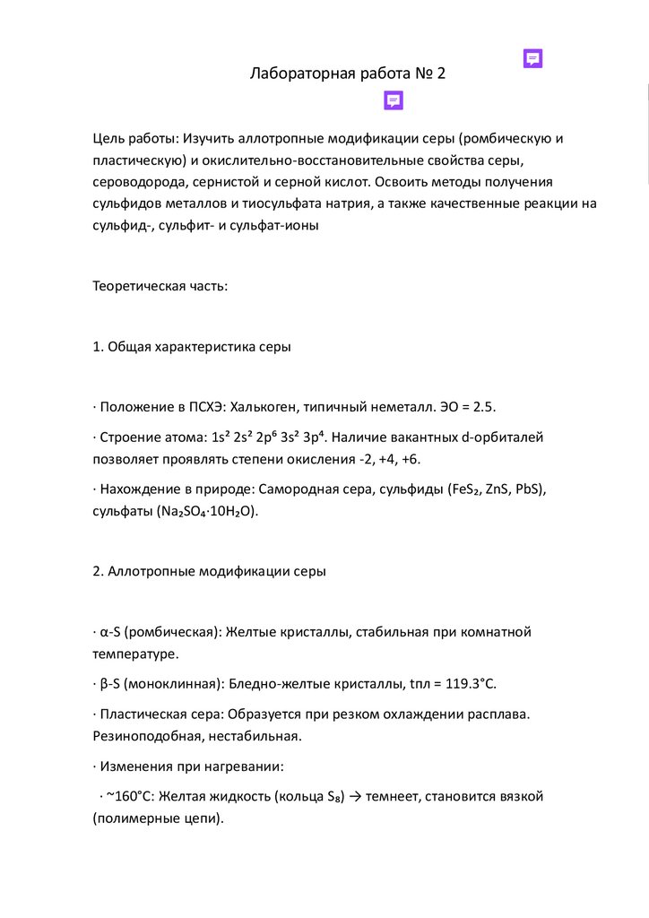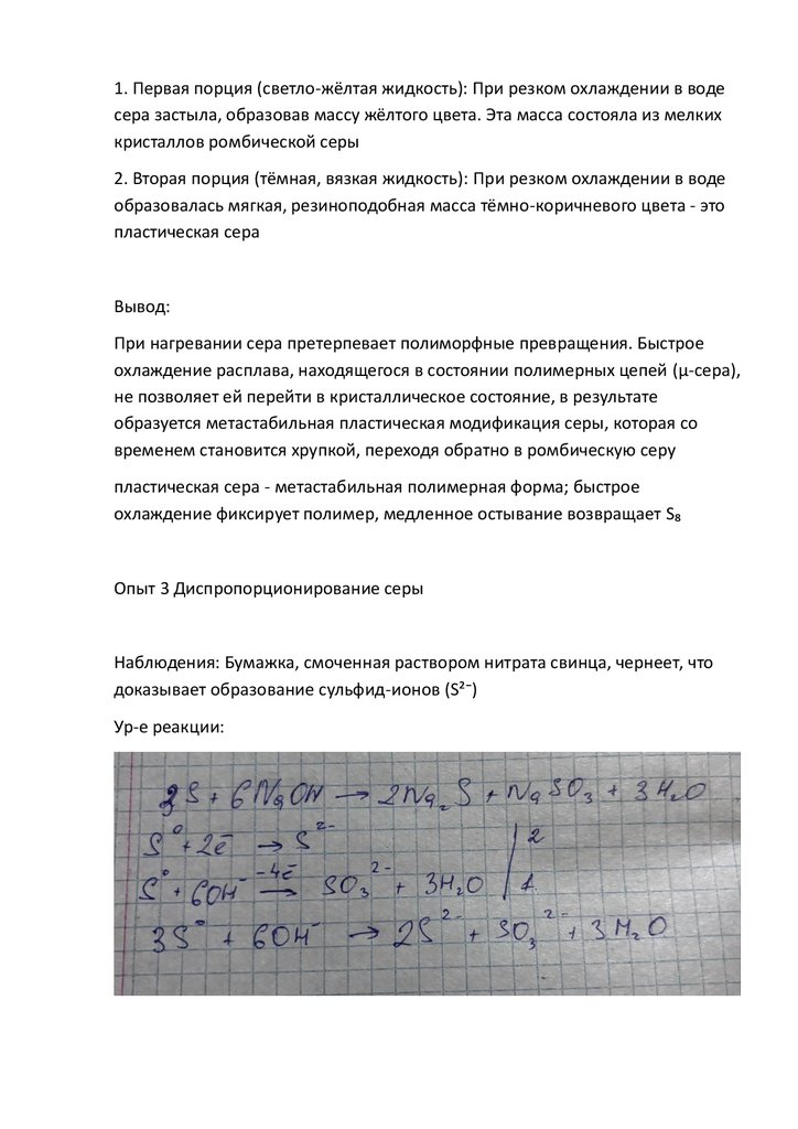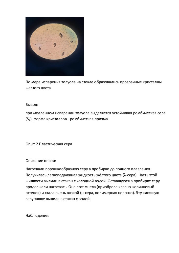 Лабораторная работа № 2Цель работы: Изучить аллотропные модификации серы (ромбическую и