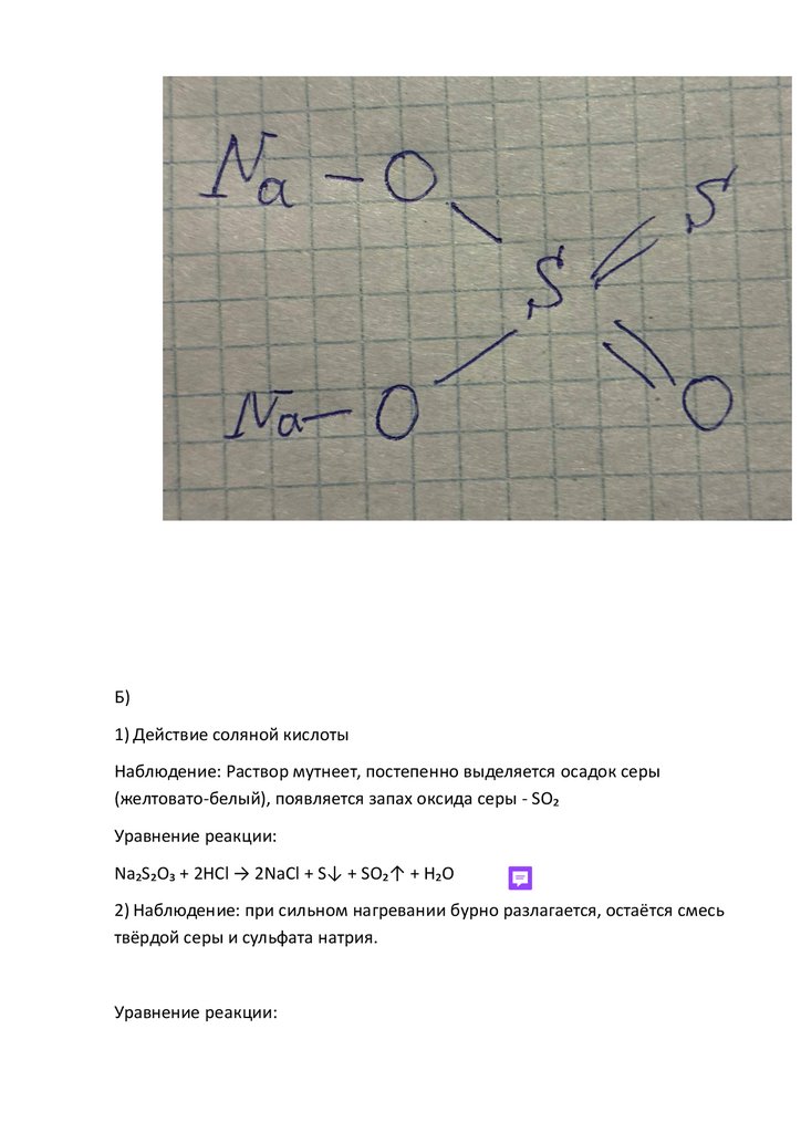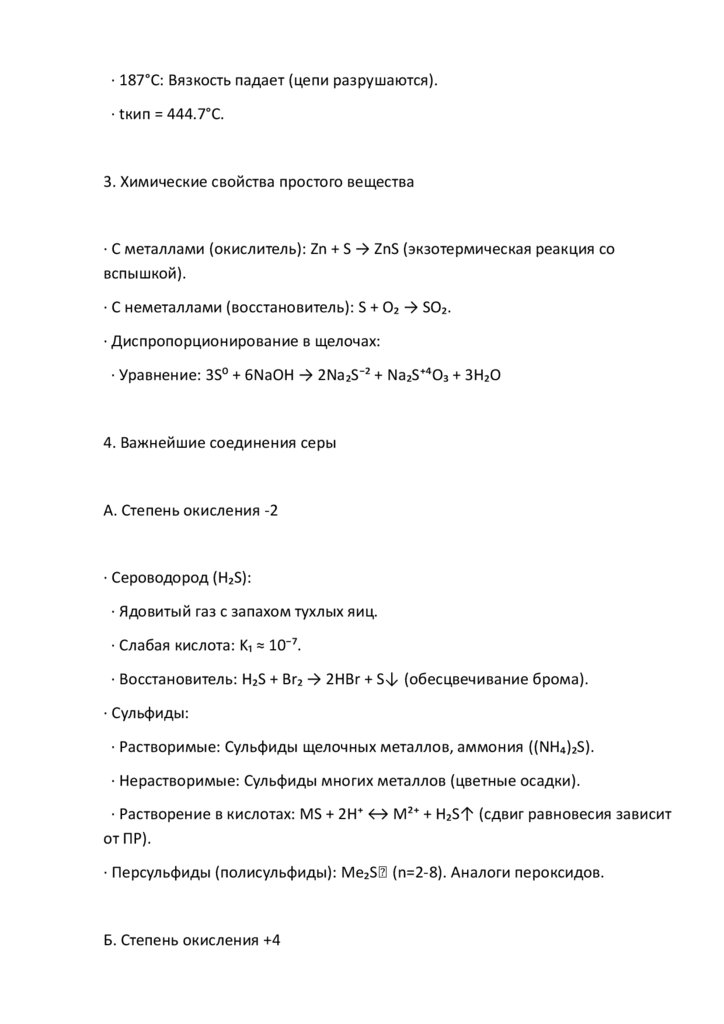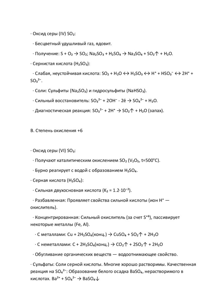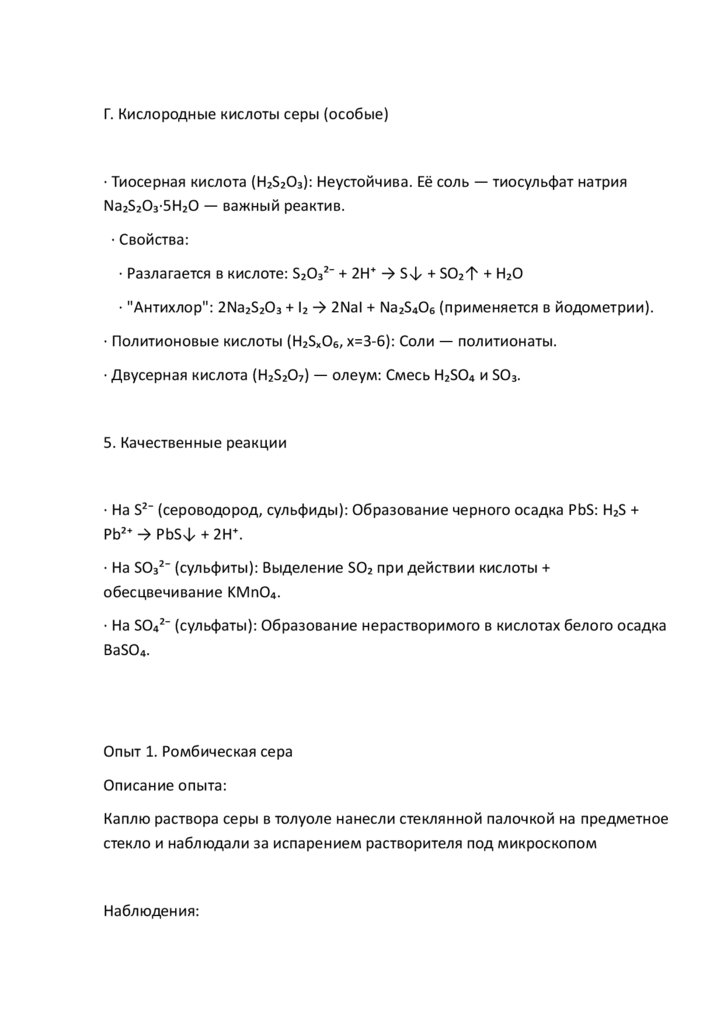 Г. Кислородные кислоты серы (особые)· Тиосерная кислота (H₂S₂O₃): Неустойчива. Её соль — тиосульфат натрия