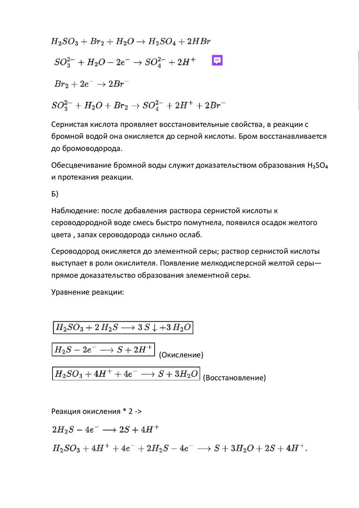 окислительно-восстановительную двойственность, а реакция с BaCl₂