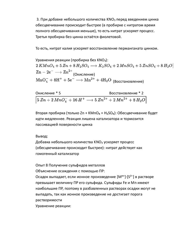 восстановлением KMnO₄ цинком показал роль нитрат-ионов как гомогенногокатализатора.