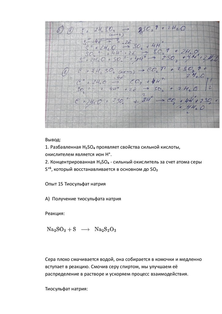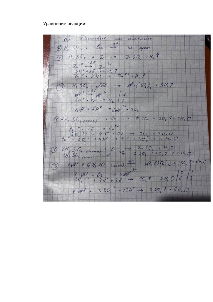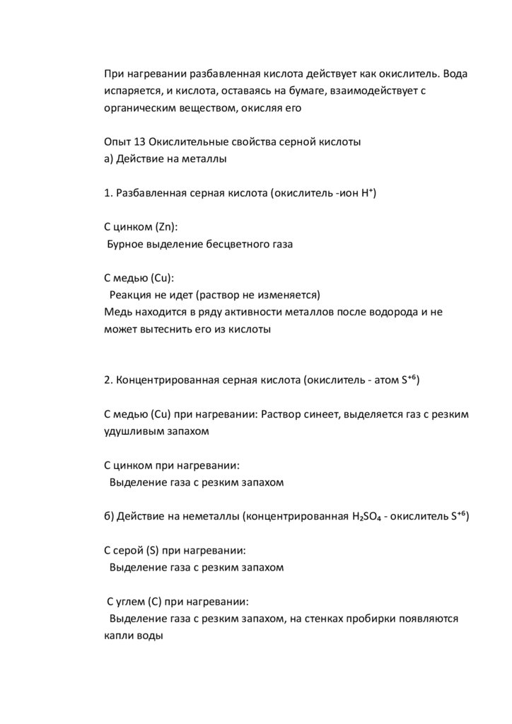Вывод:1. Разбавленная H₂SO₄ проявляет свойства сильной кислоты,