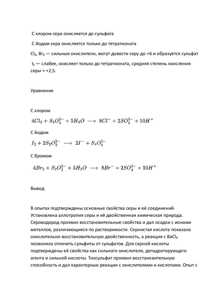 С хлором сера окисляется до сульфатаС йодом сера окисляется только до тетратионата