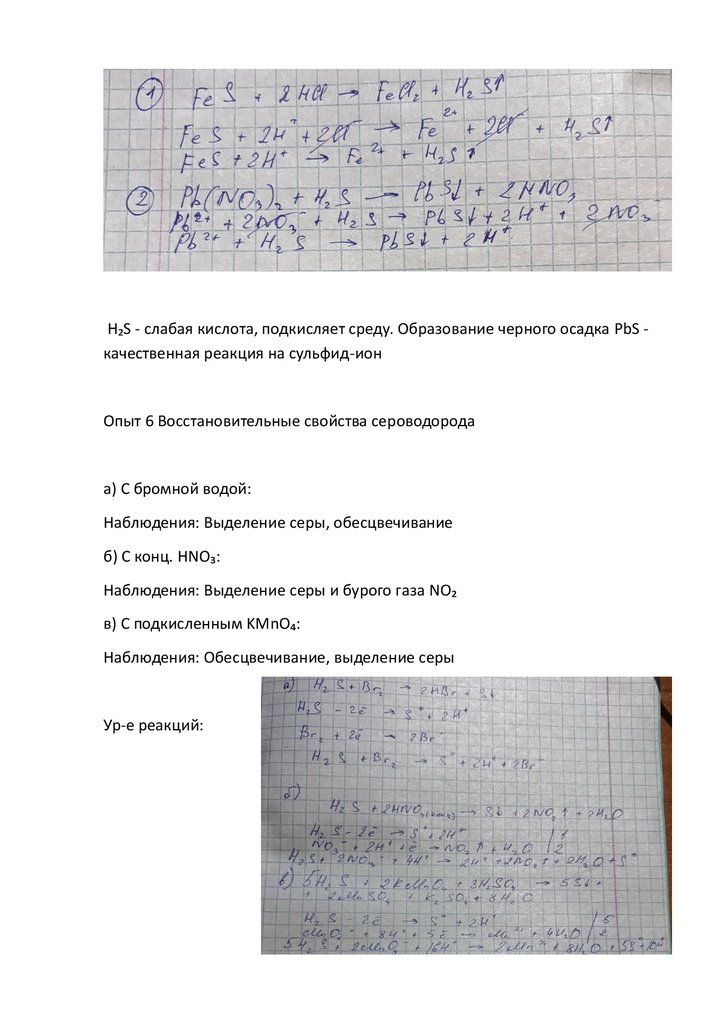 Сероводород проявил восстановительные свойства и дал осадки с ионами