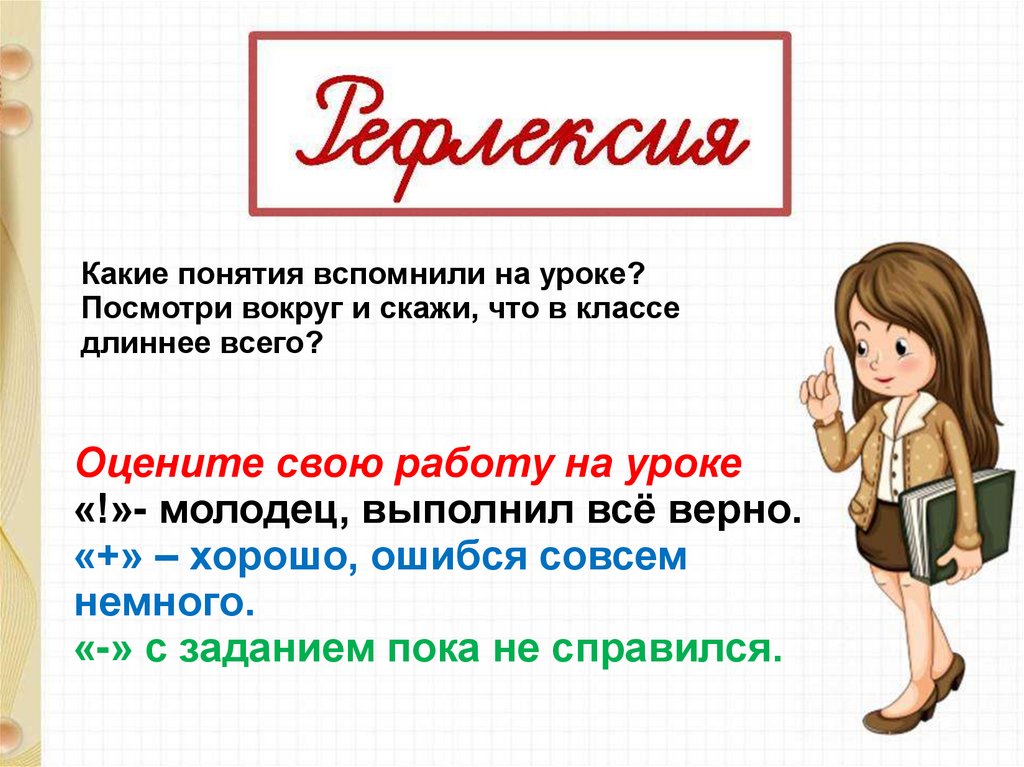Какие понятия вспомнили на уроке?Посмотри вокруг и скажи, что в классе