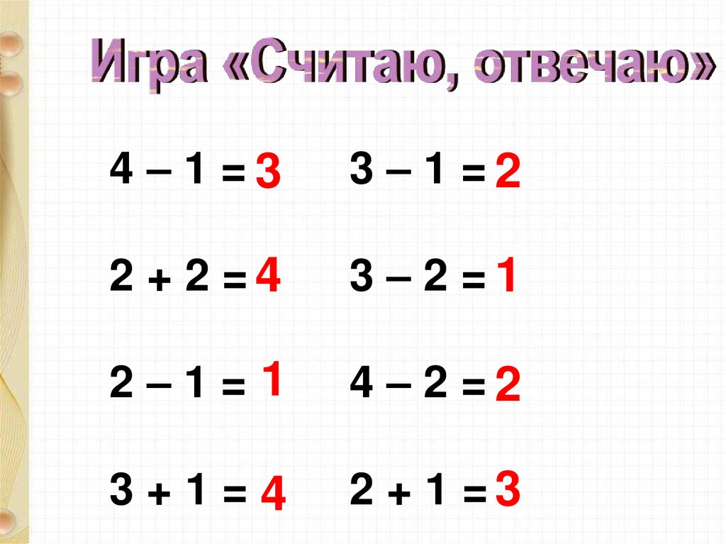 3 + 1 =42– 1 =1