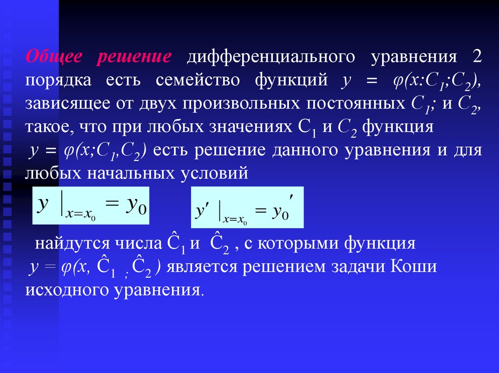 у = φ(х;С1,С2) есть решение данного уравнения и для