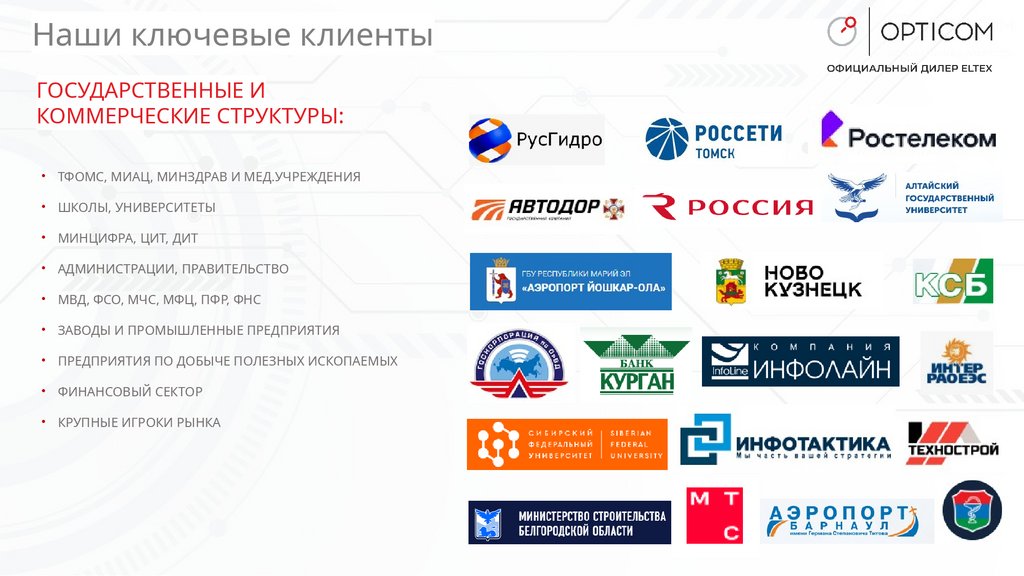 Наши ключевые клиентыГОСУДАРСТВЕННЫЕ И