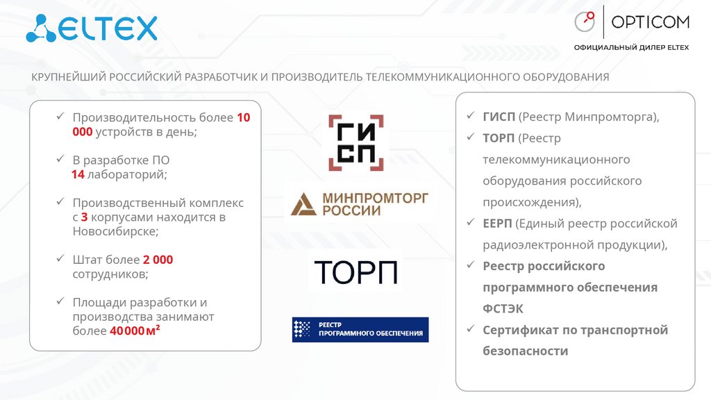 КРУПНЕЙШИЙ РОССИЙСКИЙ РАЗРАБОТЧИК И ПРОИЗВОДИТЕЛЬ ТЕЛЕКОММУНИКАЦИОННОГО ОБОРУДОВАНИЯПроизводительность более 10