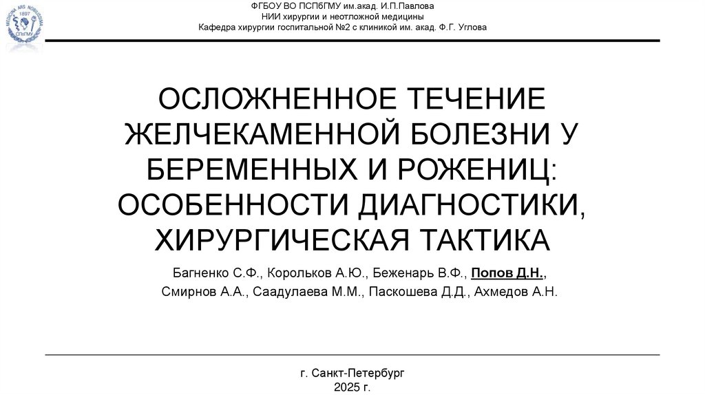 ФГБОУ ВО ПСПбГМУ им.акад. И.П.ПавловаНИИ хирургии и неотложной медицины