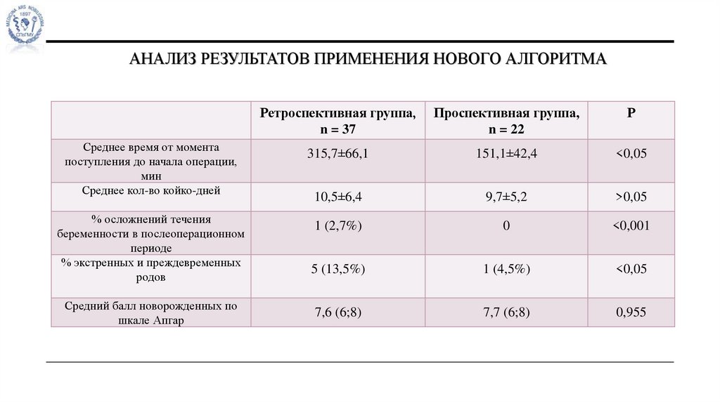 начала операции и уменьшить вероятность экстренных срочных и преждевременных родов
