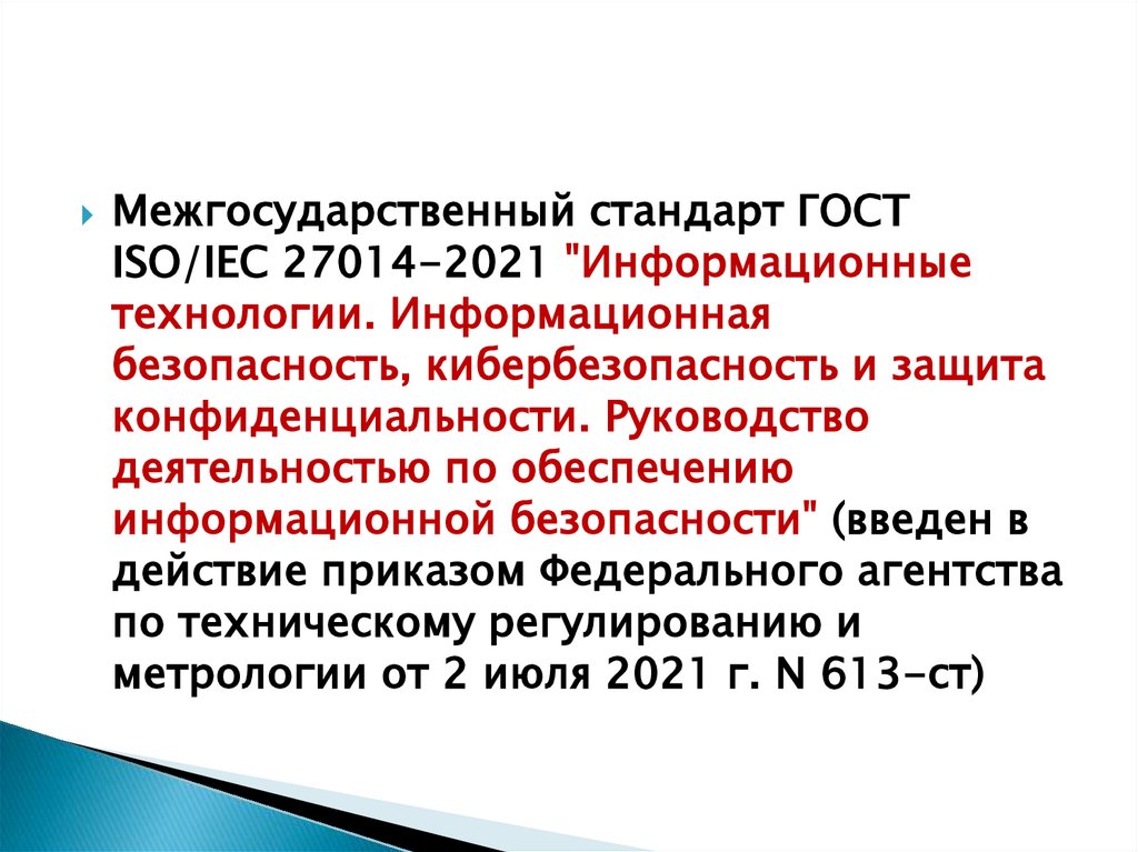 ГОСТ Р ИСО/МЭК 13335-1-2006. «ИТ. Методы исредства обеспечения безопасности. Концепция и