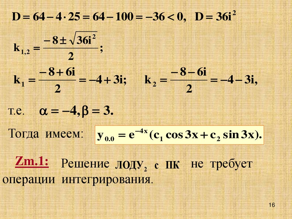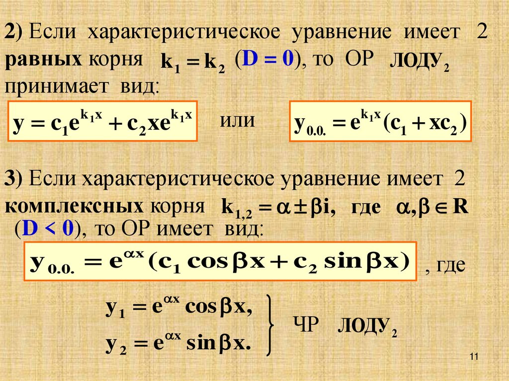 (D < 0), то ОР имеет вид: