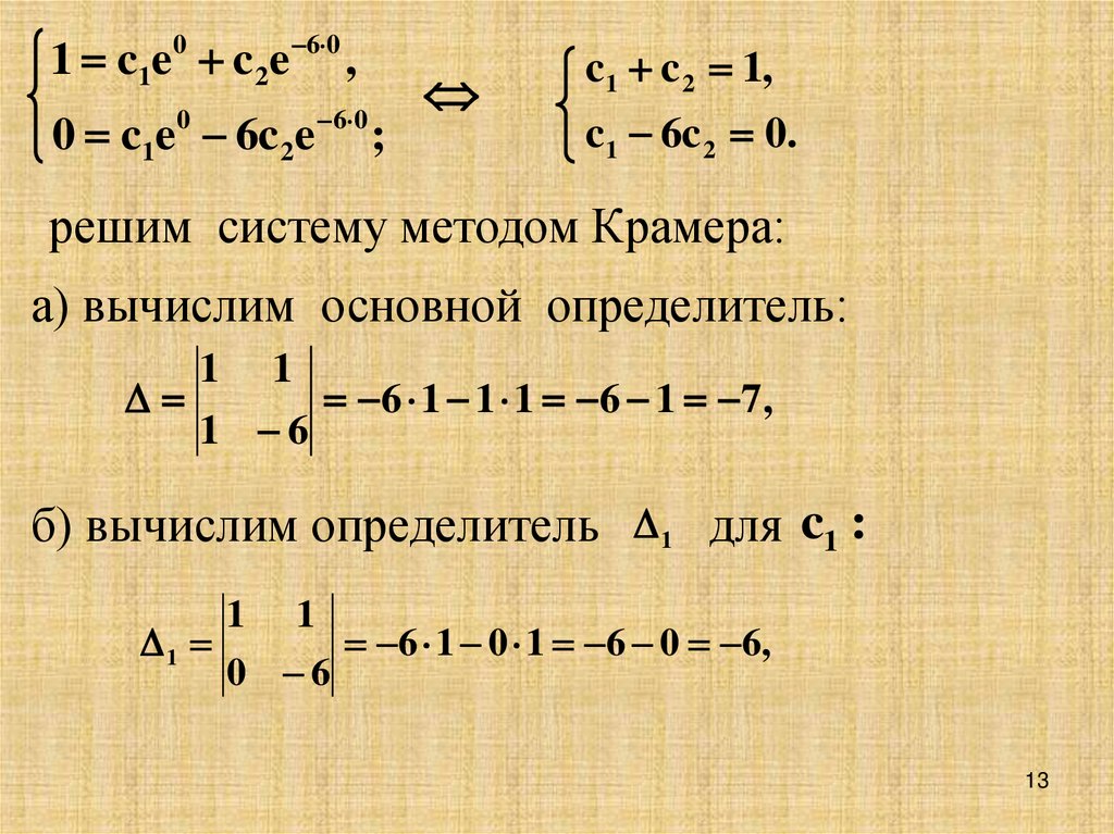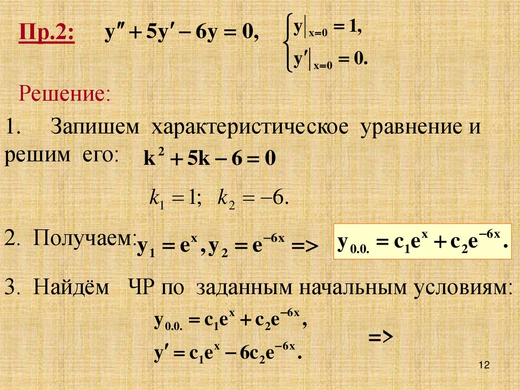 2. Получаем:y e x , y e 6 x y 0.0. c1e x c 2e 6 x .