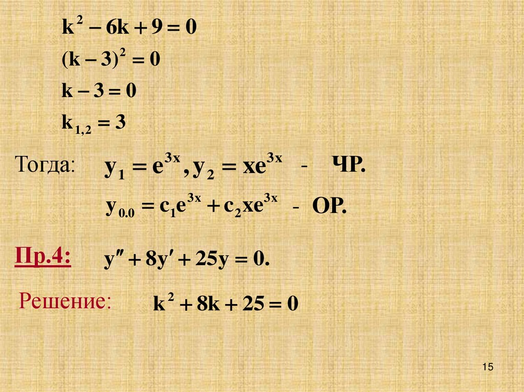 комплексных корня k 1, 2 i, где , R