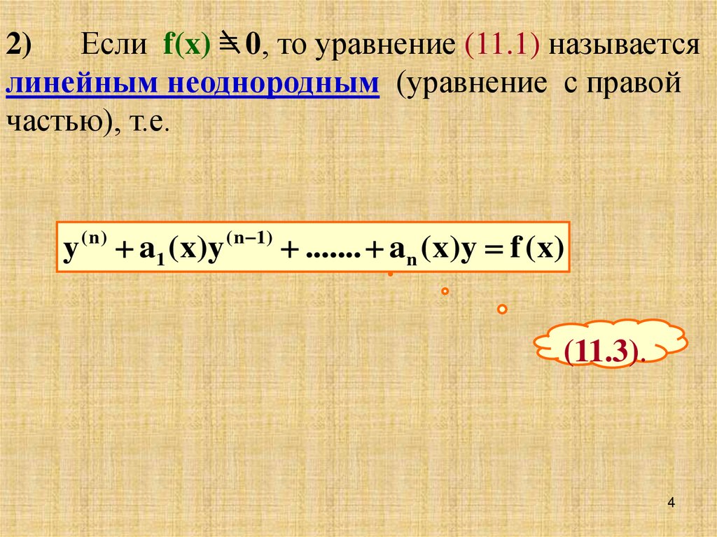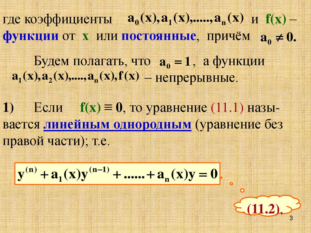 1) Если f(x) ≡ 0, то уравнение (11.1) называется линейным однородным (уравнение без
