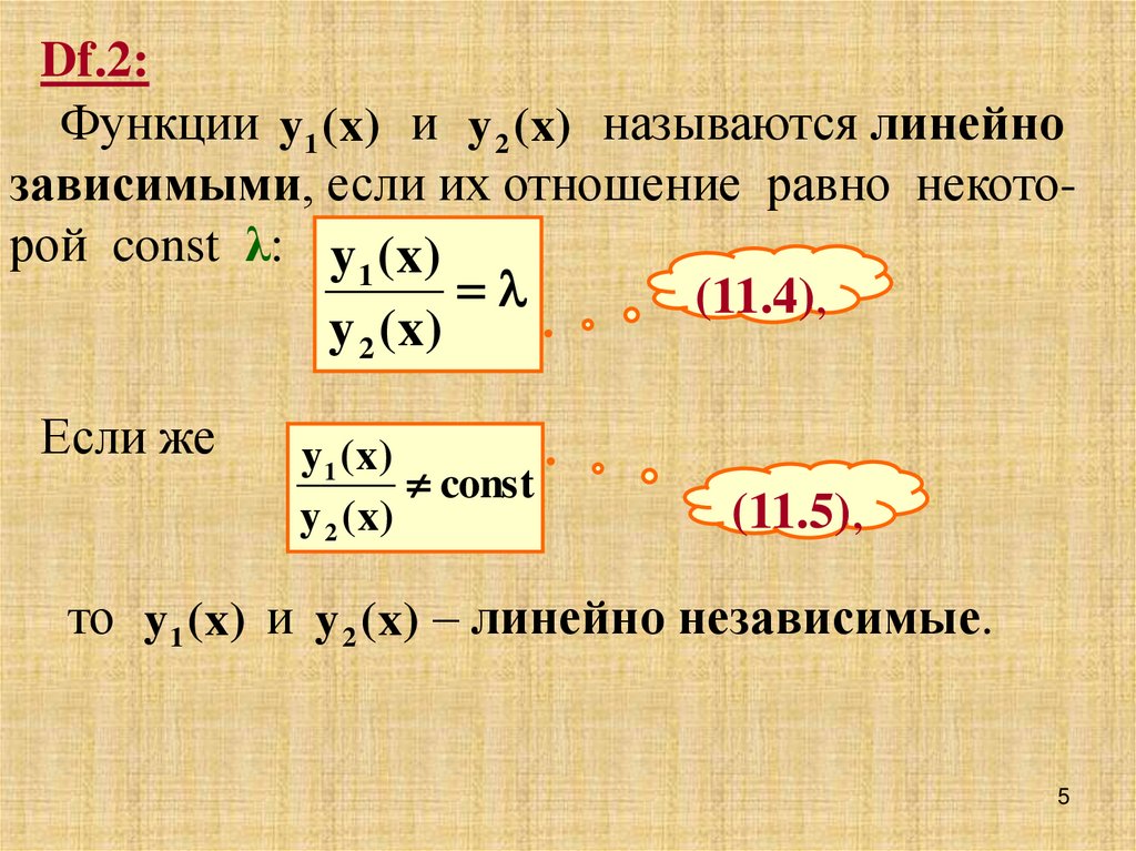 зависимыми, если их отношение равно некоторой const λ: y 1 ( x)