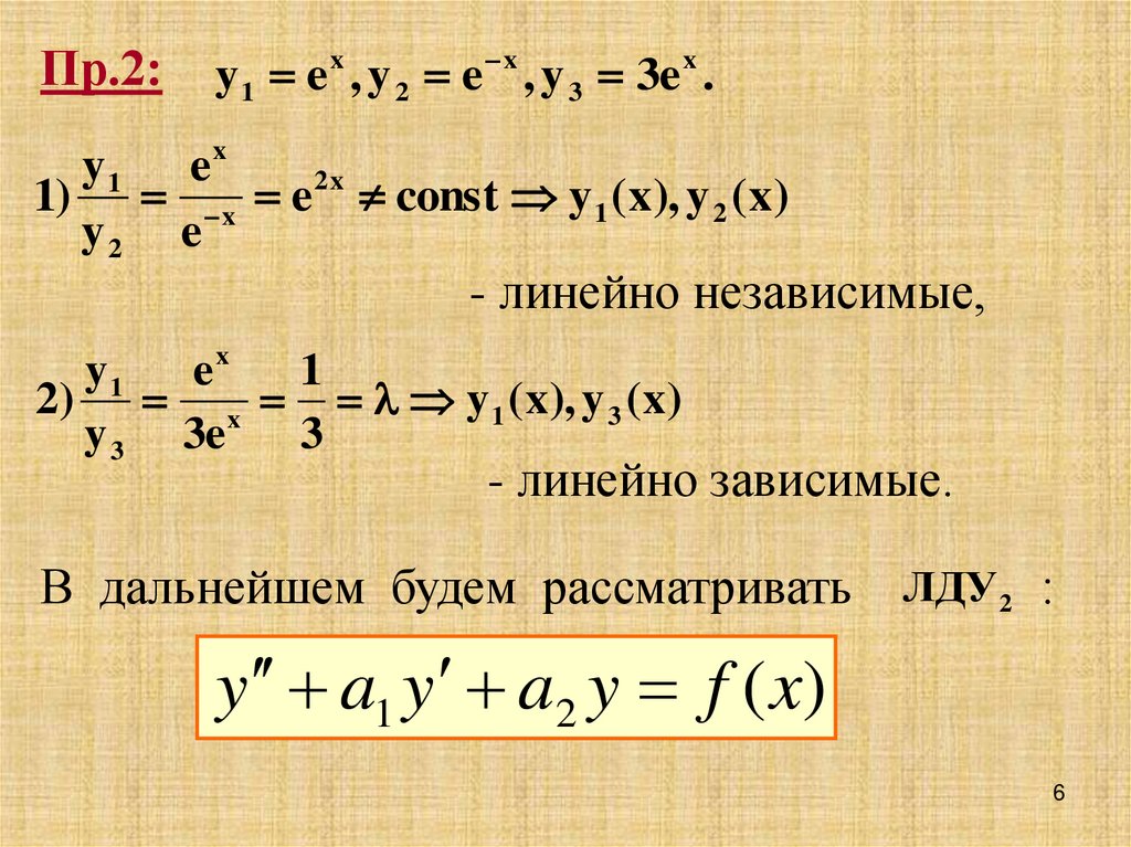 Пр.2:y 1 e x , y 2 e x , y 3 3e x .