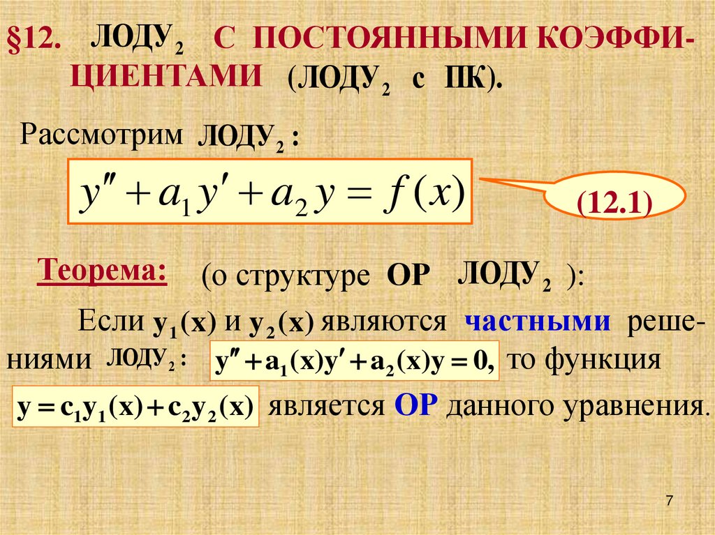 §12. ЛОДУ 2 С ПОСТОЯННЫМИ КОЭФФИЦИЕНТАМИ ( ЛОДУ 2 с ПК ).Рассмотрим ЛОДУ 2 :