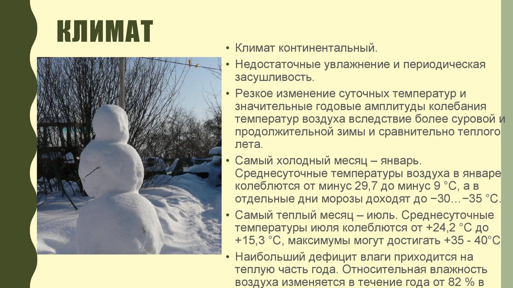 КЛИМАТ• Климат континентальный.