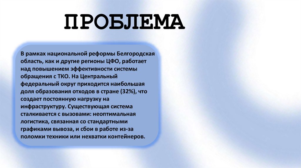 ПРОБЛЕМАВ рамках национальной реформы Белгородская