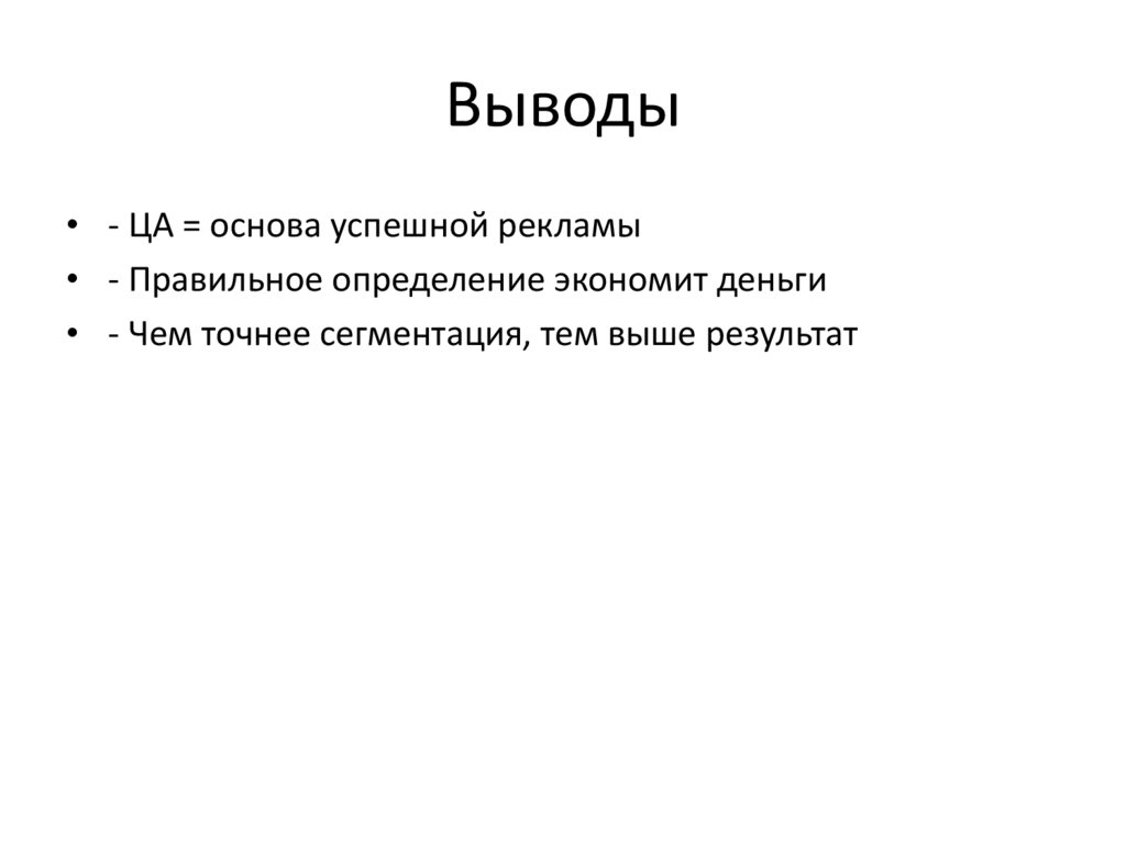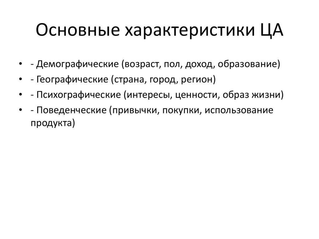 Основные характеристики ЦА- Демографические (возраст, пол, доход, образование)
