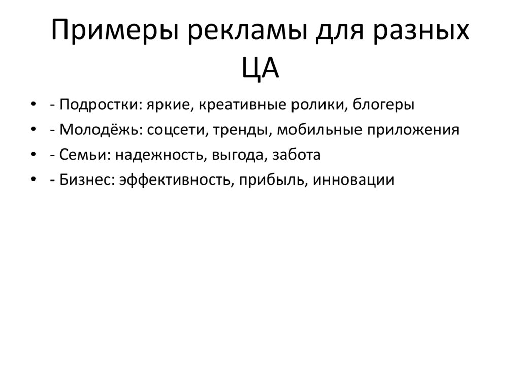 Целевая аудитория в рекламе• Кого мы хотим привлечь?
