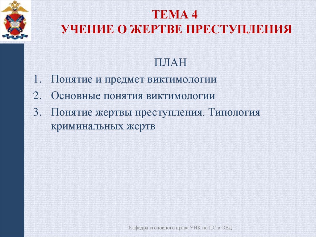 ТЕМА 4УЧЕНИЕ О ЖЕРТВЕ ПРЕСТУПЛЕНИЯ