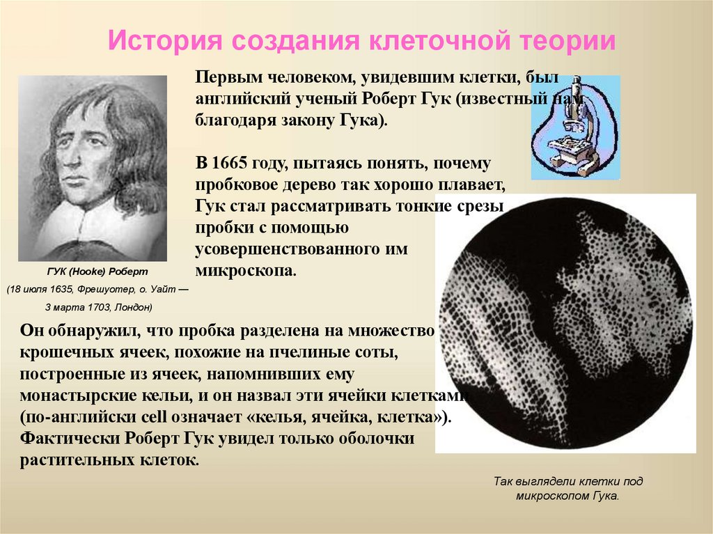 История создания клеточной теорииПервым человеком, увидевшим клетки, был
