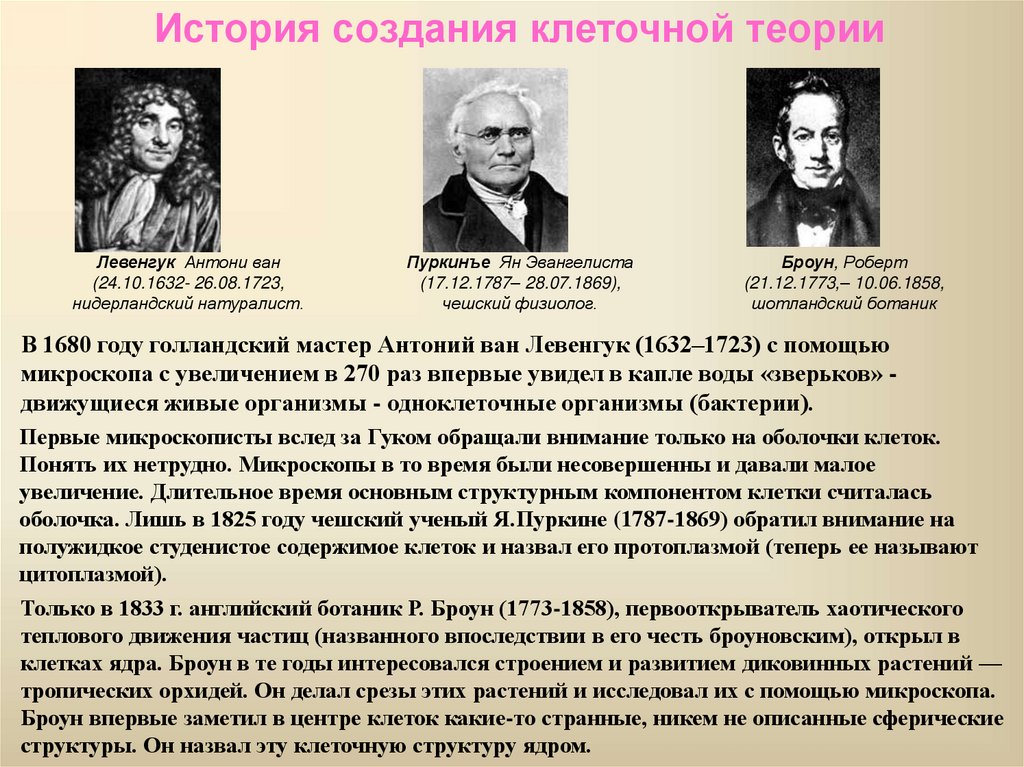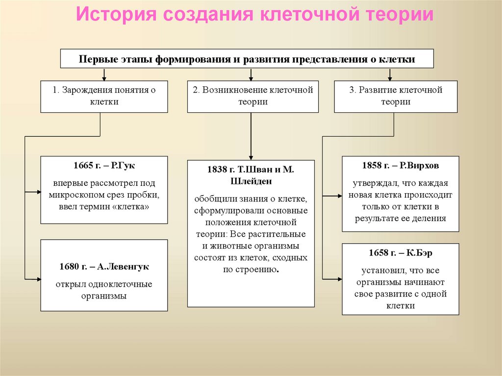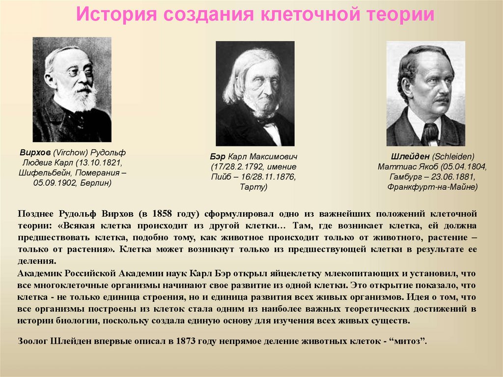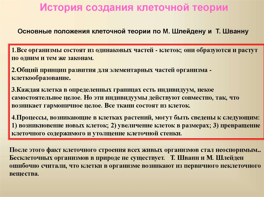 История создания клеточной теорииОсновные положения клеточной теории по М. Шлейдену и Т. Шванну