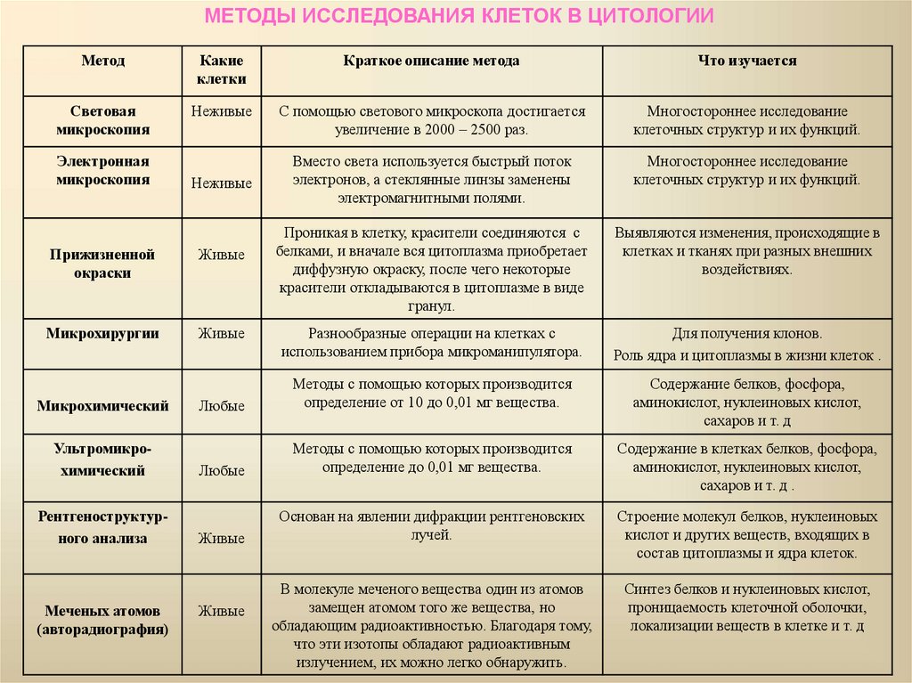 МЕТОДЫ ИССЛЕДОВАНИЯ КЛЕТОК В ЦИТОЛОГИИМетод